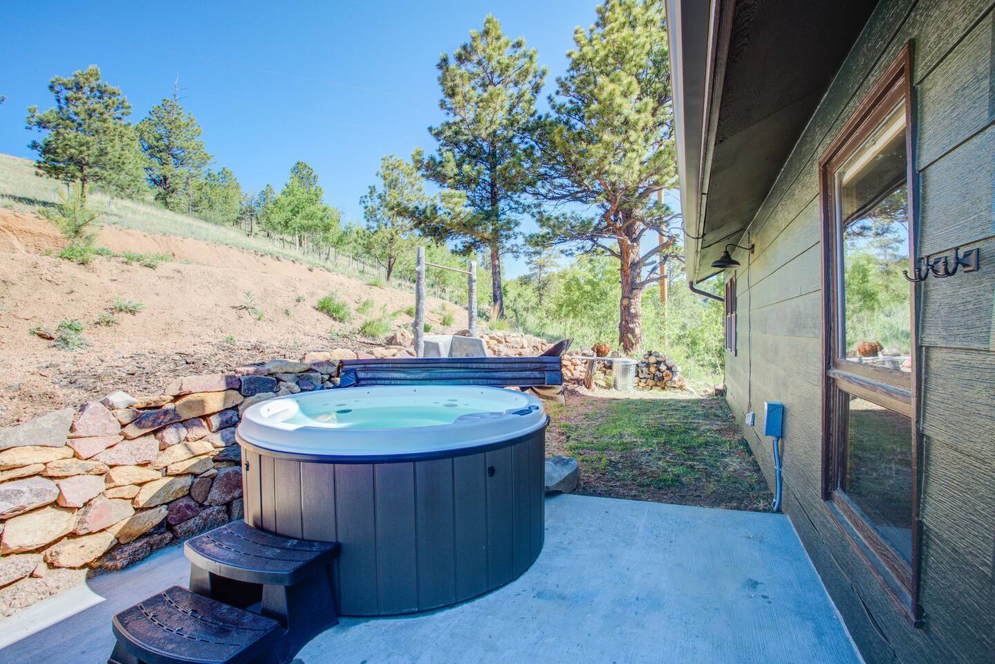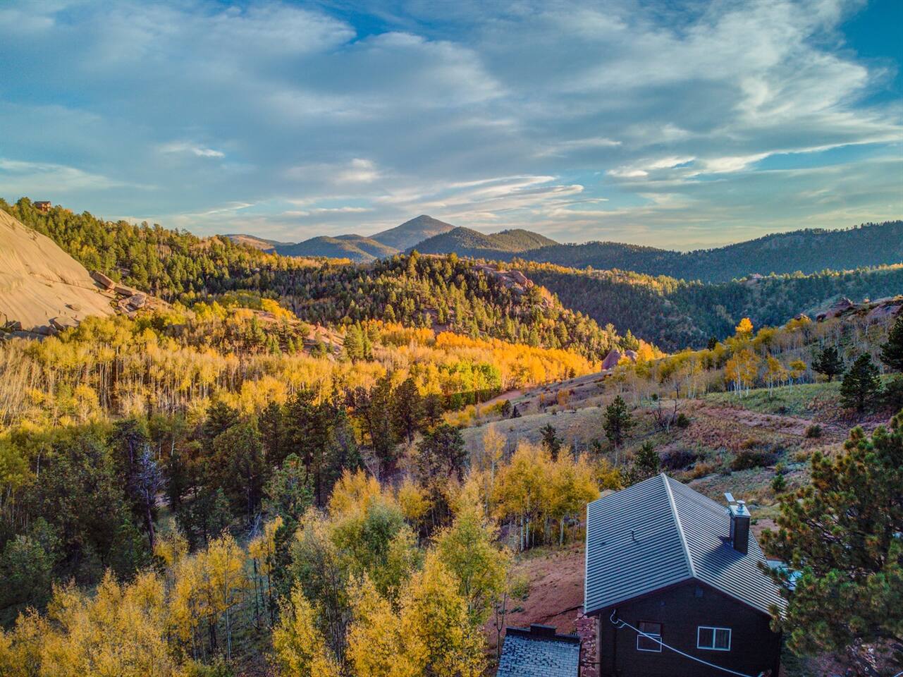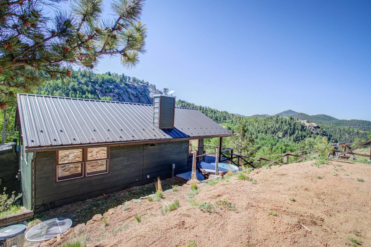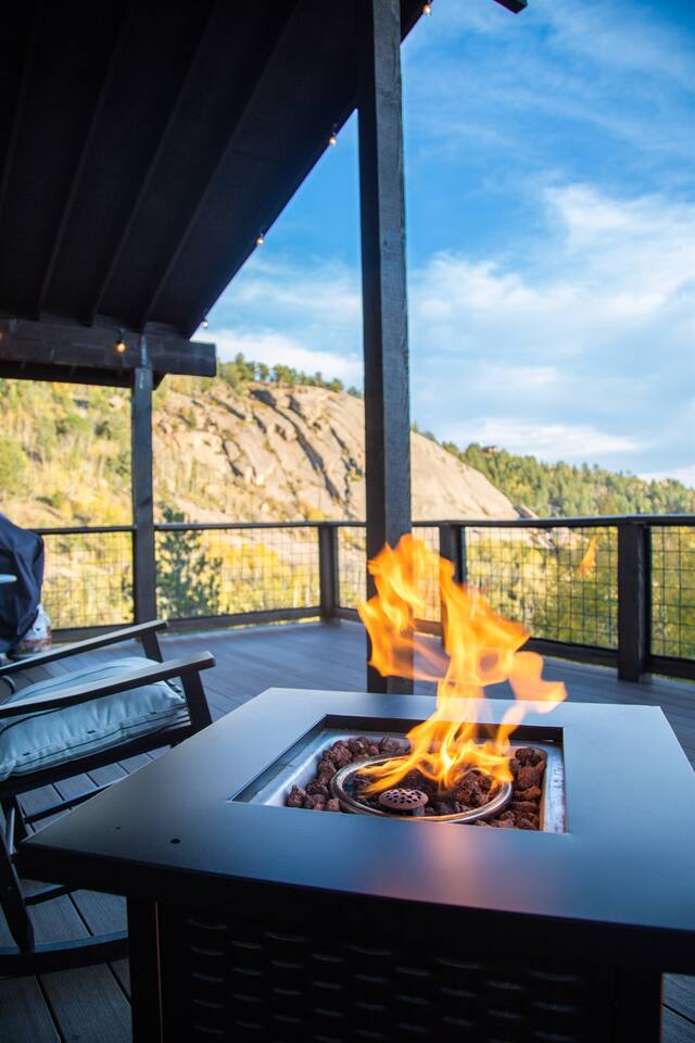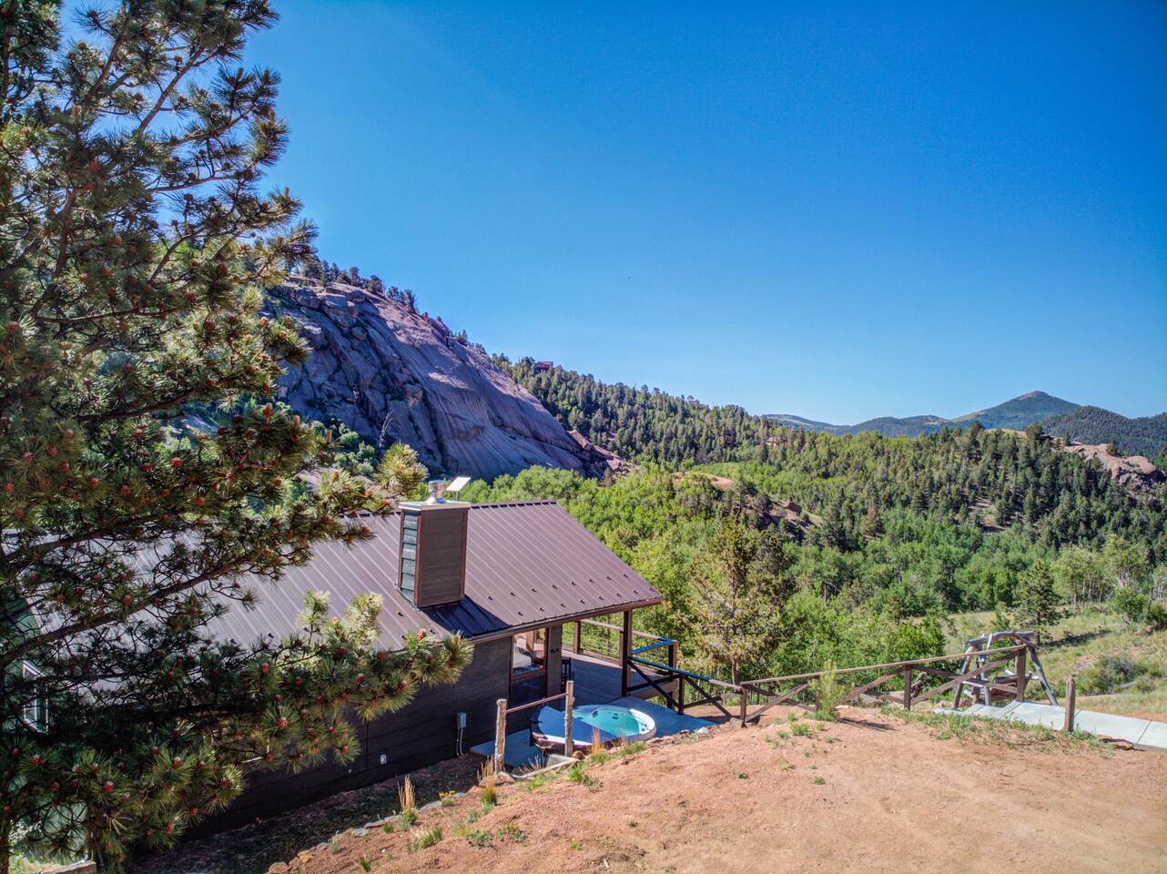 Escape to our modern cabin in the Pikes Peak region. Enjoy mountain views, a hot tub, and a large deck surrounded by aspen and pine trees. This private property has been newly renovated and boasts a large flatscreen TV and high-speed Starlink internet. Experience the magic of nature as you spot big horn sheep and other wildlife. Relax by the fire pit under a starlit sky. With its serene ambiance and new renovations, this property offers the perfect mountain getaway.