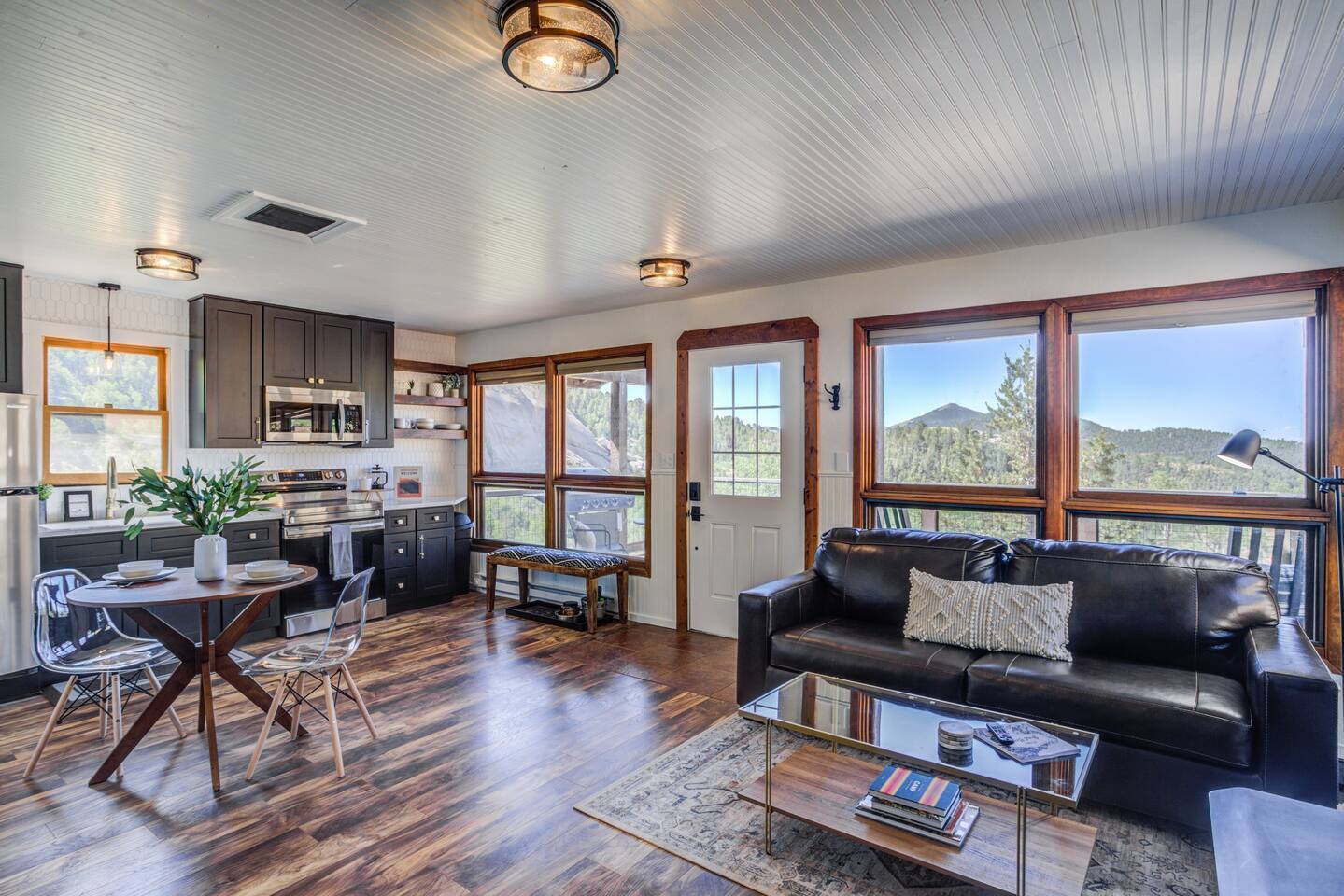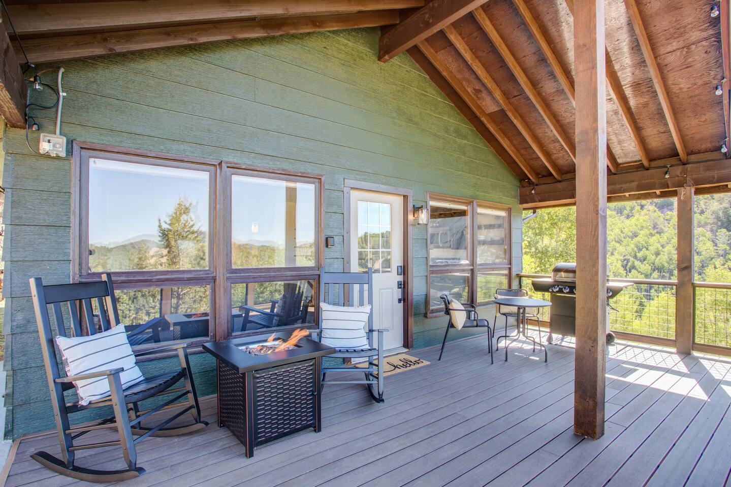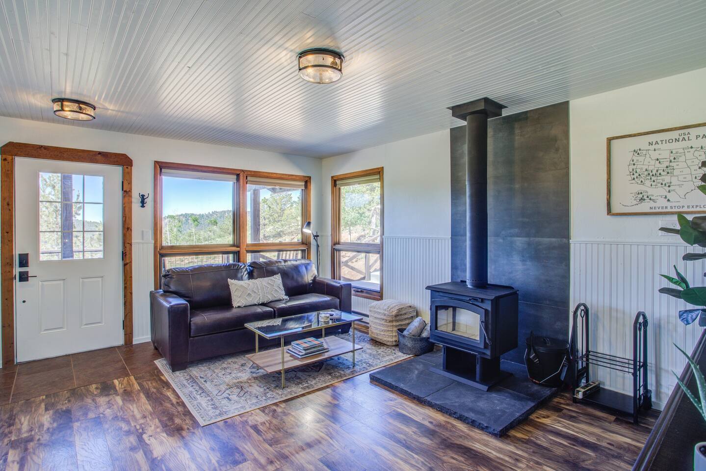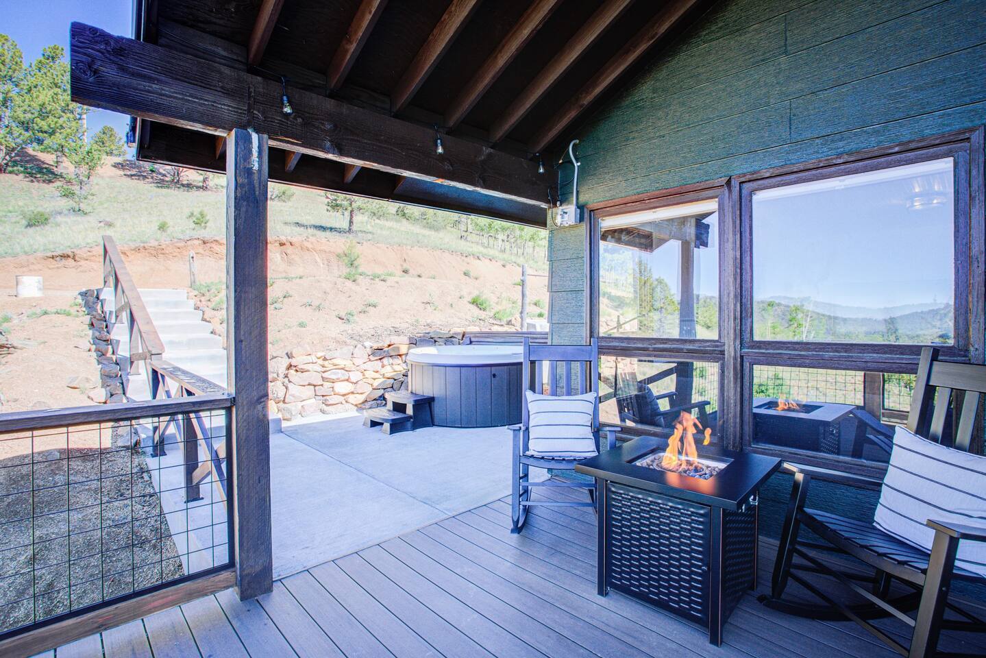 Escape to our modern cabin in the Pikes Peak region. Enjoy mountain views, a hot tub, and a large deck surrounded by aspen and pine trees. This private property has been newly renovated and boasts a large flatscreen TV and high-speed Starlink internet. Experience the magic of nature as you spot big horn sheep and other wildlife. Relax by the fire pit under a starlit sky. With its serene ambiance and new renovations, this property offers the perfect mountain getaway.