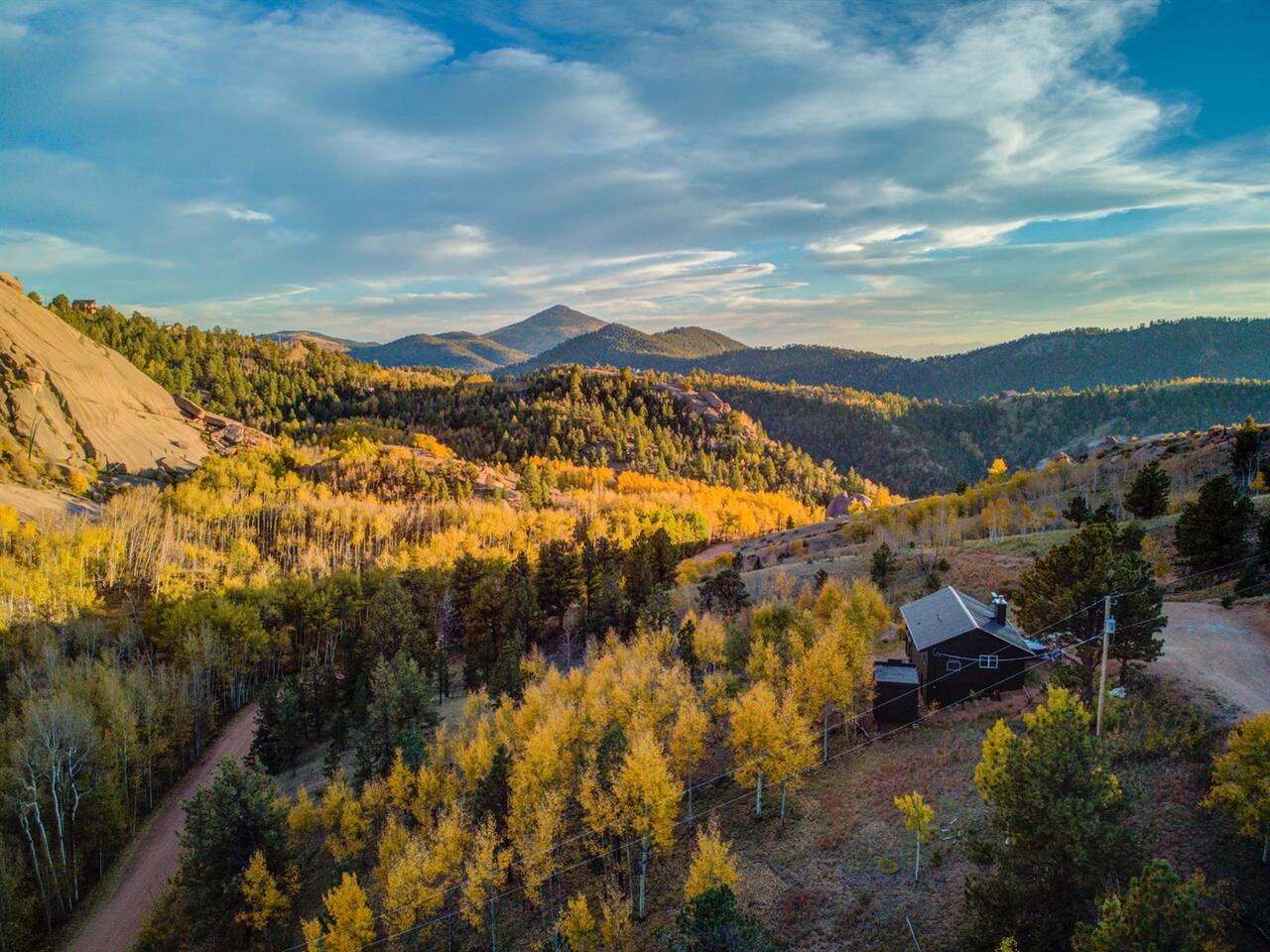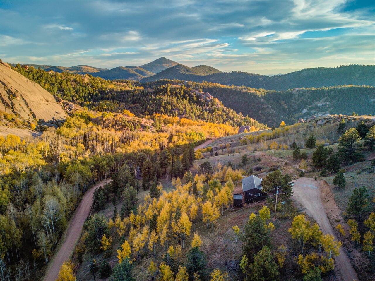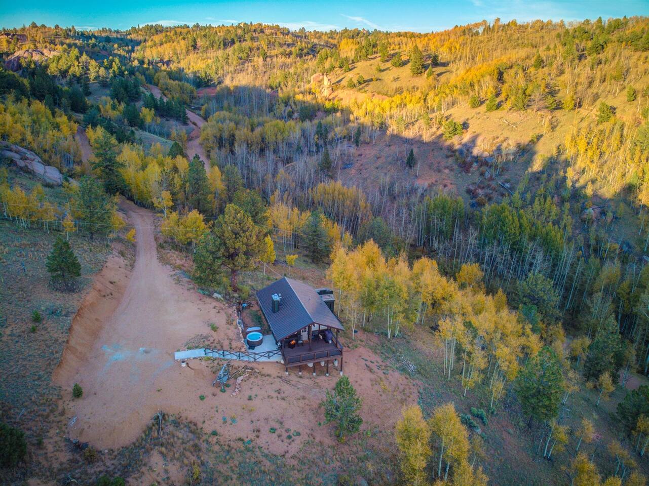 The property is located about 9 minutes off of Teller County 1 via a dirt road Gold King Dr. The driveway does have a grade and 4-wheel drive is needed for winter months, September-May. 1hr to Colorado Springs, 20 Minutes to Cripple Creek, 20 Minutes to Florissant, and 40 Minutes to Woodland Park.