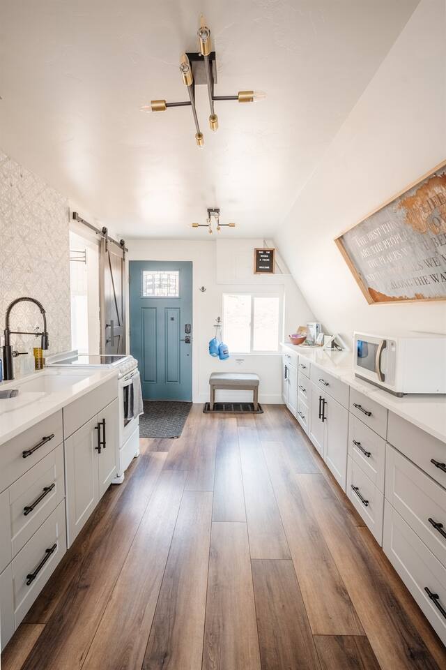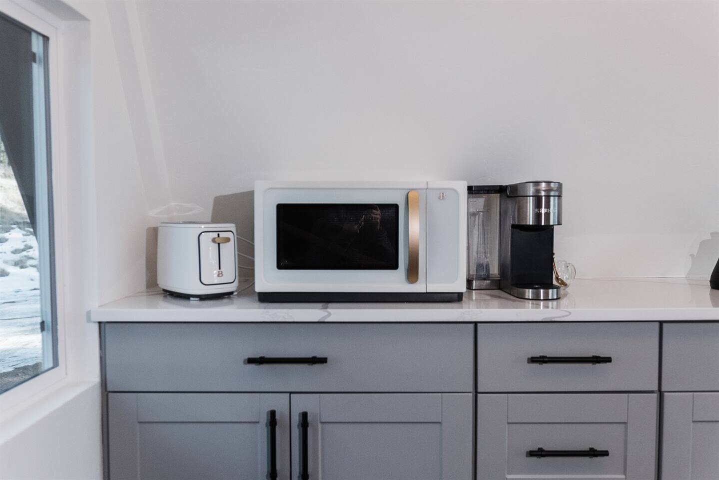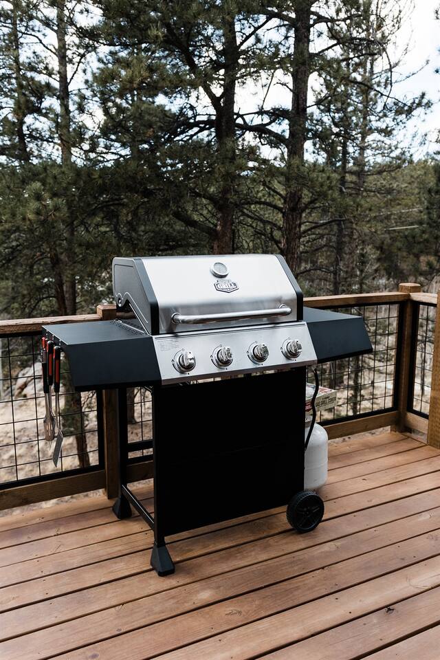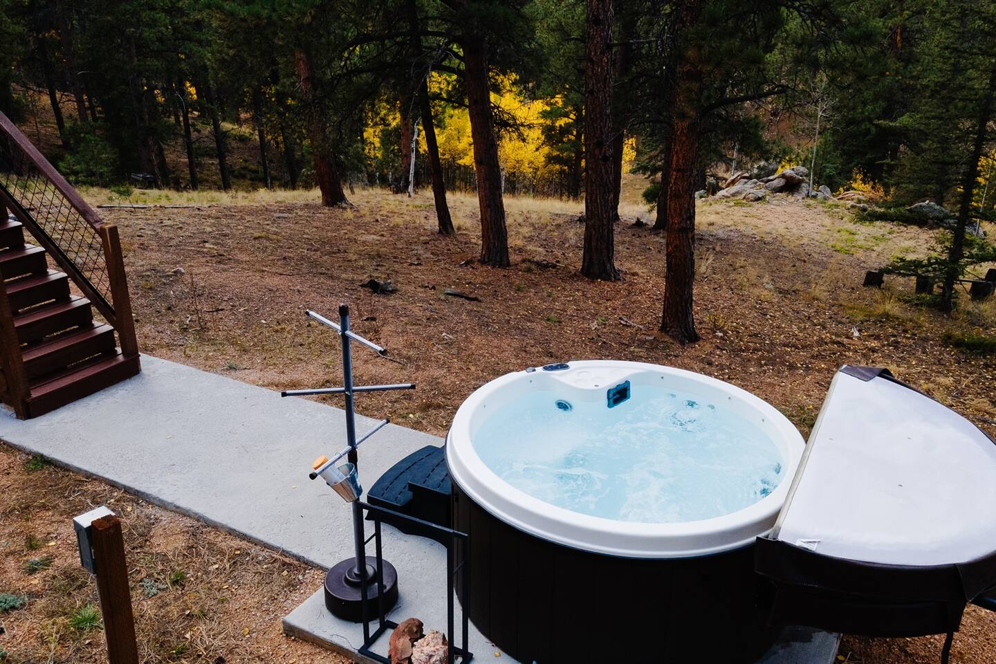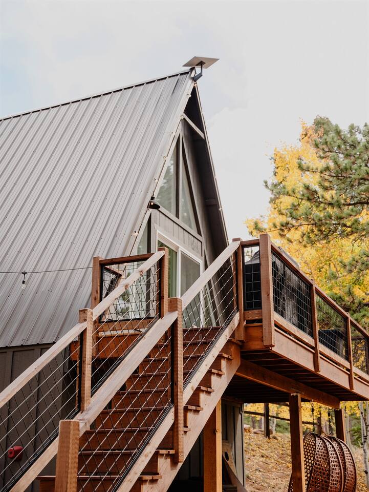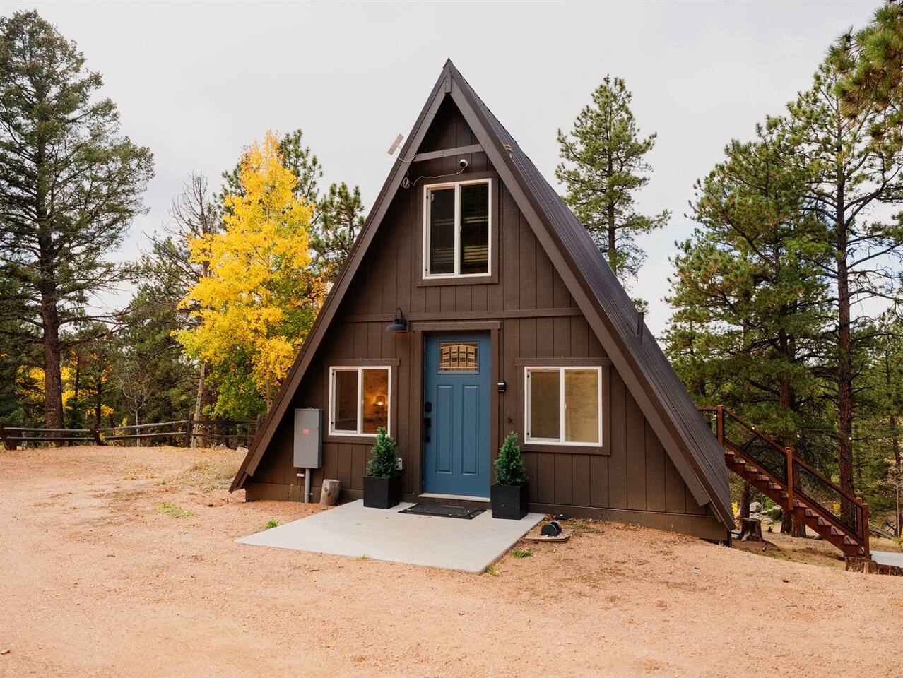 Entering the A-Frame, youโll be greeted by a newly renovated and fully stocked kitchen designed for both comfort and functionality. Enjoy ample counter space for preparing meals, a Keurig, a French press, and a dedicated hot cocoa bar for those cozy mountain mornings. The kitchen features all new appliances, including a refrigerator, stove, microwave, and more, ensuring everything you need for a convenient stay. Just to the right of the entryway, youโll find the single bathroom with a custom barn door, a full bathtub and shower, and soft, aesthetic lighting that adds a spa-like touch. Continue into the cozy and spacious living room, where large windows fill the space with natural light and showcase beautiful views of the surrounding pine trees and rocky outcroppings. Snuggle up with a blanket and stream your favorite show on the smart TV or enjoy an assortment of board games for a relaxing night in. A spiral staircase leads to the lofted bedroom featuring a queen memory foam mattress and luxurious linens, offering the perfect retreat for a restful nightโs sleep after a day of mountain adventures. Step outside onto the back deck to find comfortable outdoor seating, a gas fire pit, and a grillโan ideal spot for evening gatherings or quiet mornings surrounded by nature. Below the deck, hanging chairs invite you to unwind and gently sway as you take in the peaceful forest views. At the base of the deck stairs, youโll discover the private hot tub, perfect for soaking beneath a star-filled sky. The A-Frame sits on six secluded acres filled with pine and aspen trees and rock formations, offering privacy, tranquility, and a true Colorado mountain experience.