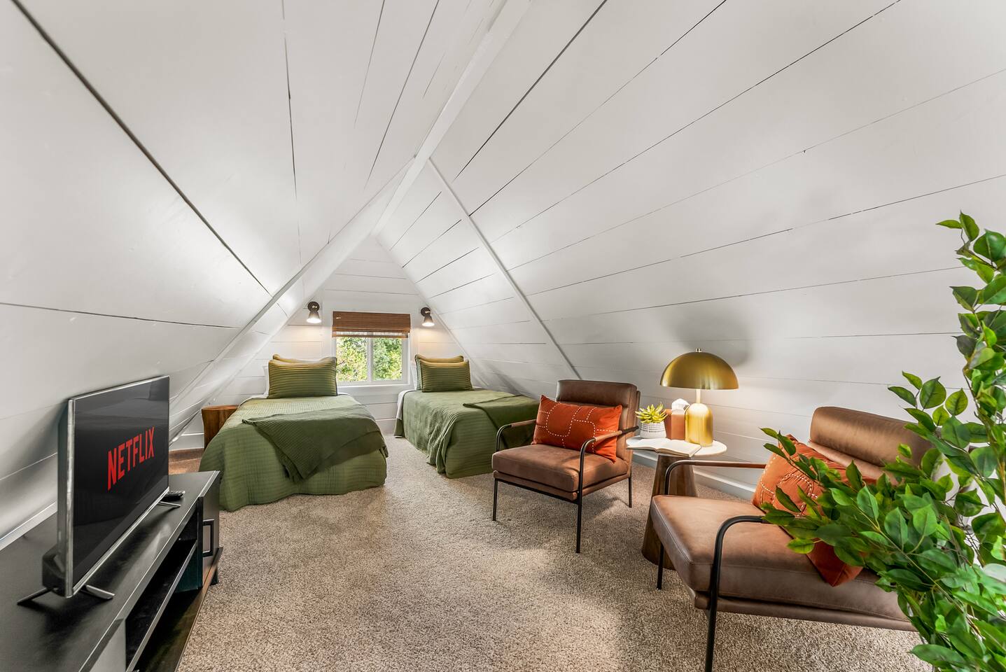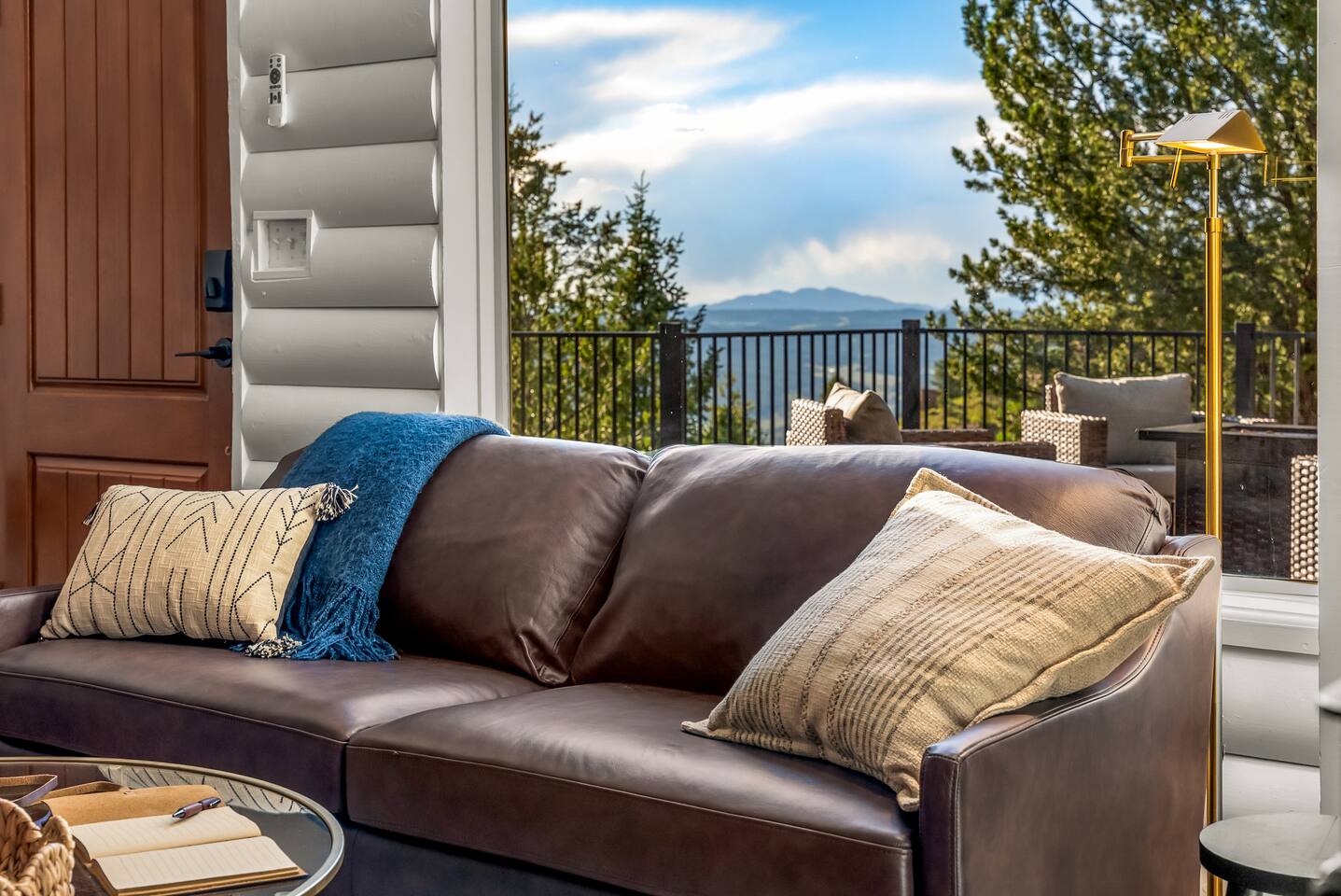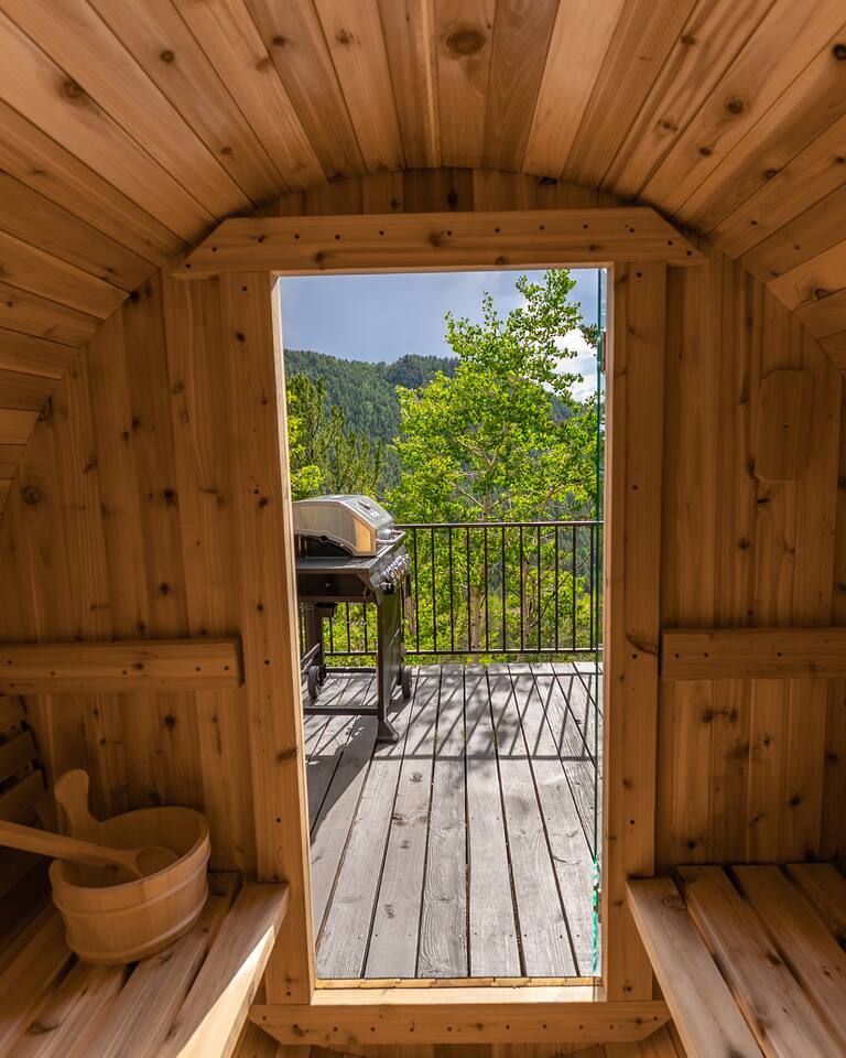 Welcome to Bighorn Vista — your private mountain retreat where breathtaking views, cozy comforts, and modern amenities create the perfect getaway. When you arrive, you’ll park along a quiet mountain road and take a short walk down a sturdy set of stairs to the cabin, tucked just below the road for added privacy. With each step, the view begins to unfold — towering peaks, endless sky, and the promise of relaxation ahead. At the bottom, you’re greeted by the spacious front deck, designed for both fun and serenity. Comfortable seating offers a place to sip your morning coffee or watch the sunset paint the mountains. A fire pit is perfect for gathering under the stars, and the built-in sky net — suspended over the deck’s edge — invites you to lie back and gaze at the mountains below or the sparkling night sky above. Step inside, and the cabin opens into a warm living room centered around a glowing fireplace. Large windows frame the view, bringing the outdoors in, while plush seating creates the perfect spot to curl up with a blanket, enjoy a movie, or simply watch the shifting light over the peaks. The living area flows into the fully equipped kitchen, stocked with everything you need to prepare anything from quick snacks to full dinners. Modern appliances, quality cookware, and plenty of counter space make cooking a pleasure. A dining area at the counter keeps everyone connected, whether you’re cooking, eating, or chatting over coffee. Off the main living space is the custom bathroom, designed with mountain charm and modern touches. Quality finishes and thoughtful details give it a spa-like feel, making it a welcome retreat after a day outdoors. The primary bedroom is located on the main level, offering a plush king-size bed dressed in soft linens for ultimate comfort. A washer and dryer are tucked into the closet, perfect for longer stays or freshening up after adventures. This space feels private and peaceful, ideal for a restful night’s sleep. Head upstairs to find the lofted bedroom — a cozy, open space with two twin beds, a couple of comfortable chairs, and a collection of games. Perfect for kids, friends, or extra guests, the loft doubles as a fun hangout spot and a quiet reading nook. Its open railing lets you look down over the main living space, keeping the cabin feeling bright and connected. While the interior is welcoming, the back porch is where the magic happens. Here you’ll find a private sauna — the ultimate way to relax after a day of hiking, skiing, or exploring. A grill is ready for evening cookouts, and the hot tub offers pure mountain bliss. Soak in steaming water while gazing at the stars, watch the sunset over the ridges, or enjoy a crisp morning with the mist rising around you. Every corner of Bighorn Vista has been thoughtfully designed to balance comfort, style, and adventure. Spend your days exploring nearby trails, fishing in mountain streams, or discovering charming small towns — then return to your cabin to relax by the fire, share stories on the deck, or simply listen to the quiet of the forest. Whether you’re here for a romantic getaway, a family vacation, or a friends’ retreat, Bighorn Vista isn’t just a place to stay — it’s an experience. From the sky net to the hot tub, the sauna to the mountain views, it’s a space that invites you to slow down, breathe deeply, and make memories you’ll treasure long after you leave.