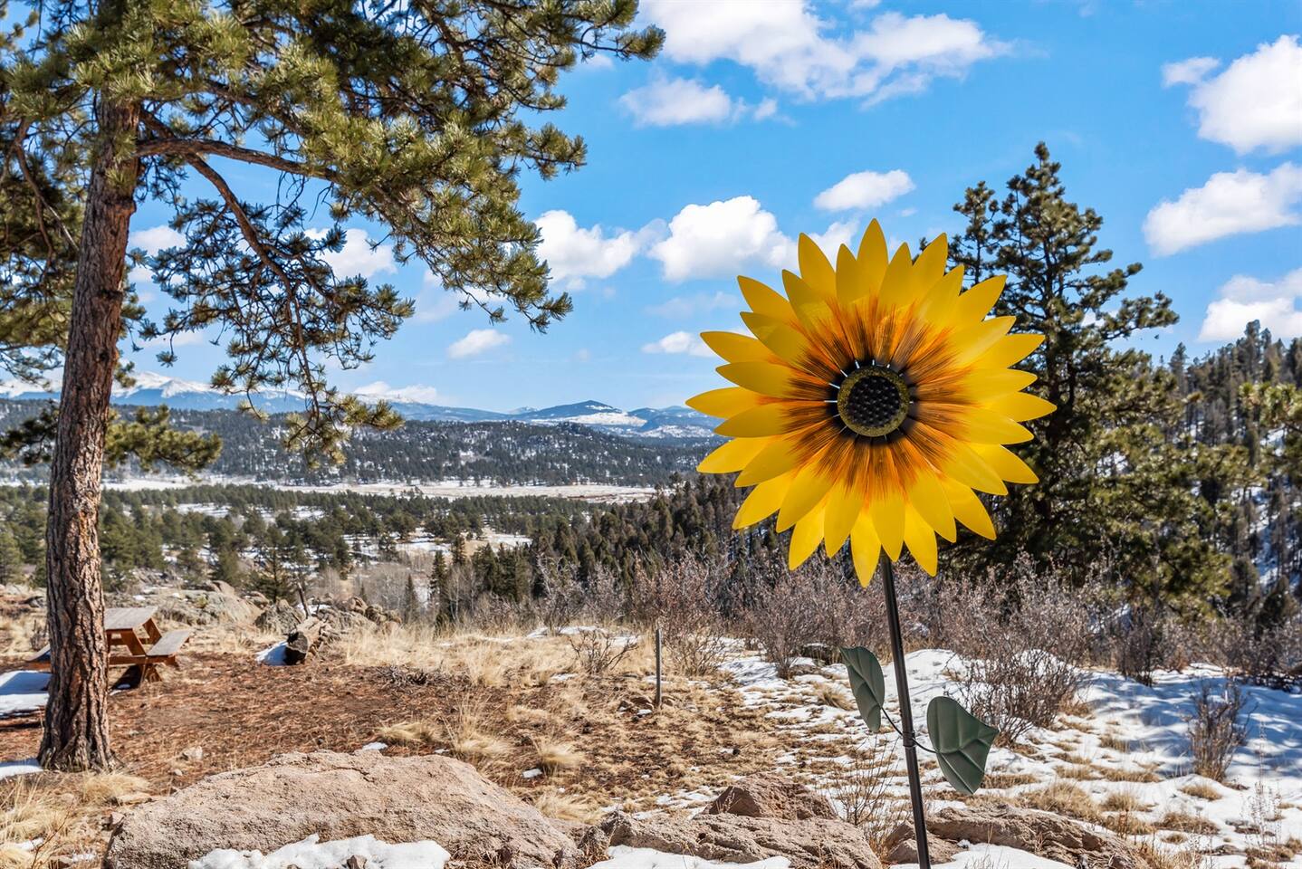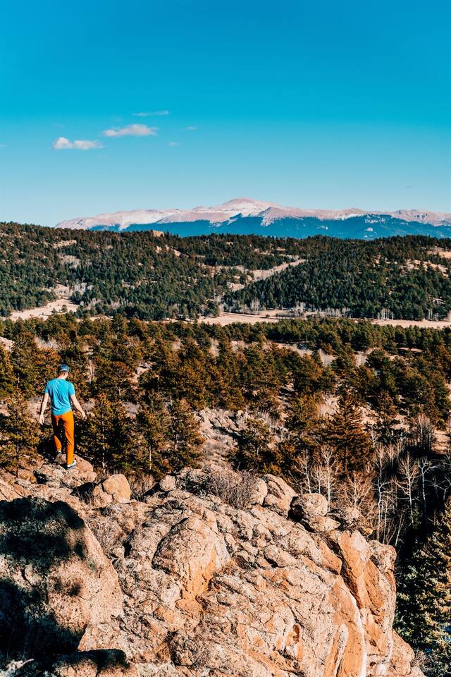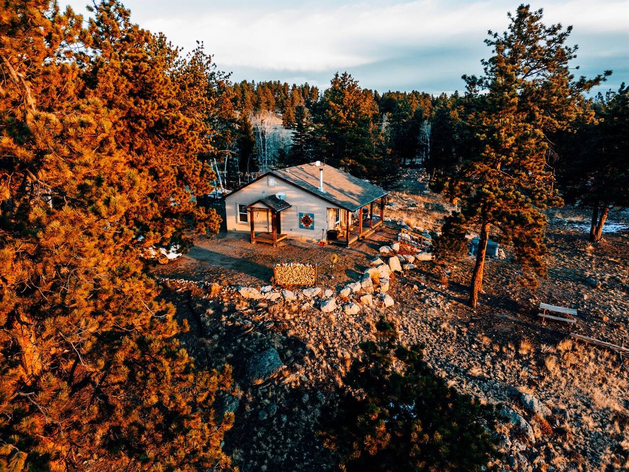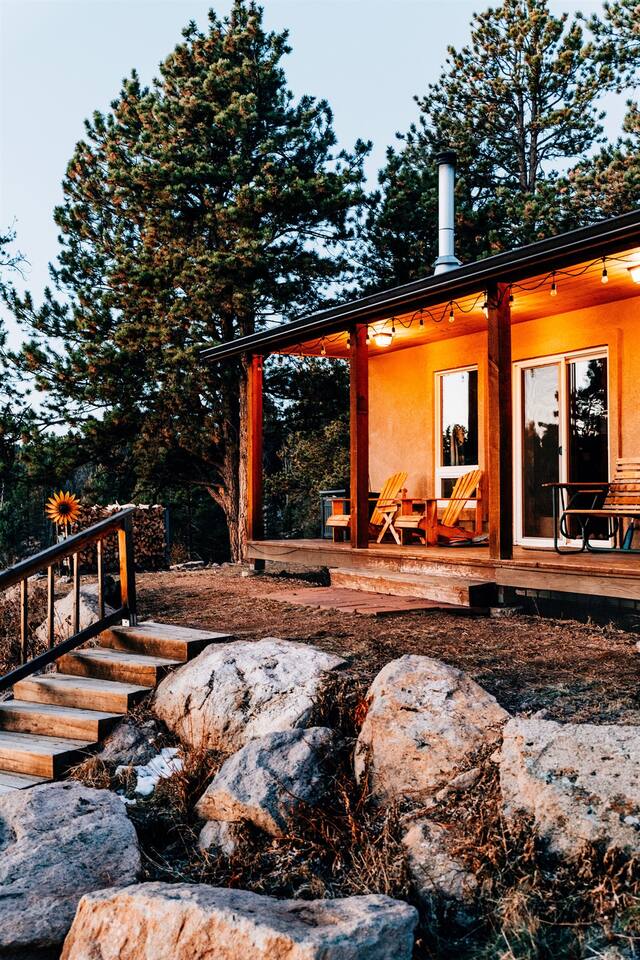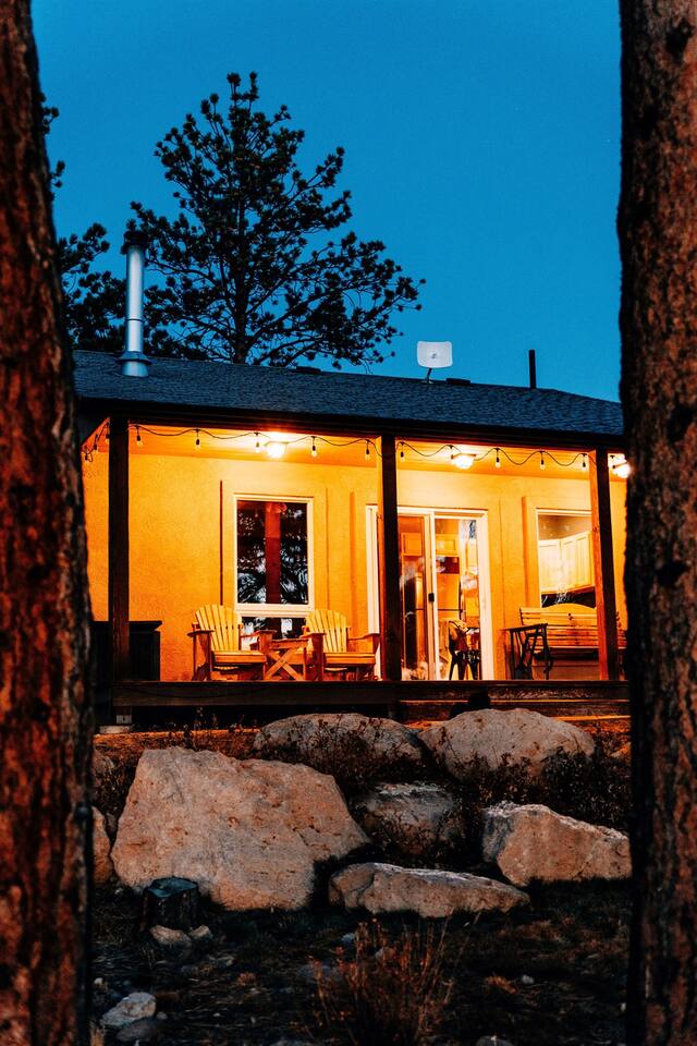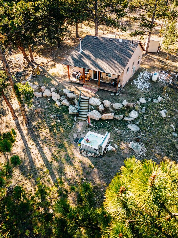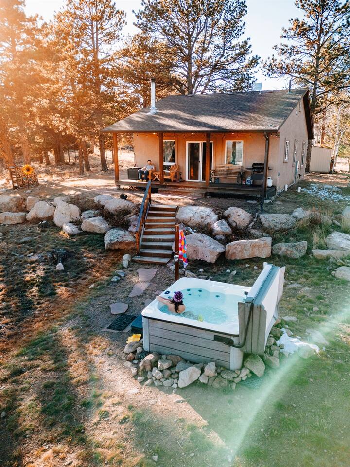 ★ King bed ★ Dog inclusive ★ 3 private acres + Pikes Peak views ★ Hot tub ★ Wood stove with firewood and fire-starting supplies provided ★ 1.25 hours to CO Springs, 2.25 hours to DIA Perched atop a rock wall, Sunflower Cabin is surrounded by pine and aspen trees. The views of Pikes Peak are unmatched, especially at sunrise and sunset! You will likely see more deer, turkeys, and chipmunks than other humans, but if you’d like to venture out, the town of Florissant is just 23 minutes away!