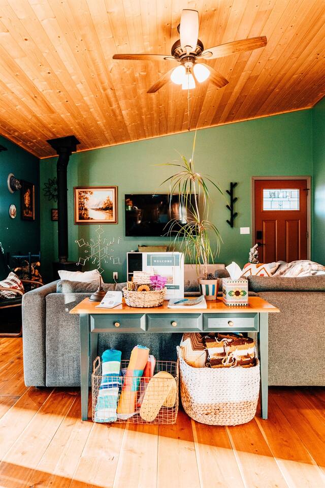 You will have access to the entire cabin during your stay. You are very welcome to use our washer and dryer, located in the second bedroom closet. You might notice one locked closet across from the bathroom – this area is for supply and linen storage. Please explore our surrounding woods to gather kindling for the stove, or play frisbee golf, enjoy a picnic on our picnic table, or watch the sunrise from our bench!