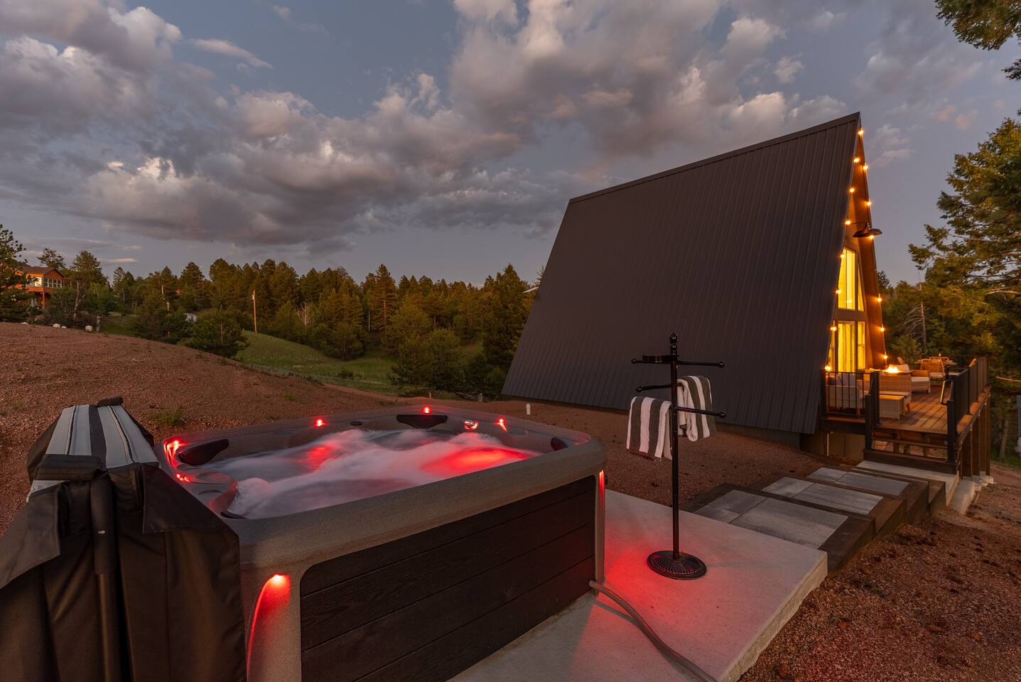Important (Please Read)! Kindly note: neighbors may be visible from the hot tub area, so we ask that you enjoy it with care and respect for the surrounding homes. We do NOT accept check-in or check-out on holidays. Absolutely NO open fires are allowed. The risk of wildfire in the area is too high. The gas firepit out back is available when there is no fire ban. If there is a fire ban, the firepit will be removed. You will be asked to leave immediately if there is any fire activity. Pets This is a dog-friendly listing for dogs who qualify. Please message us before booking for our pet policy to see if your dogs qualify. There is an additional fee for bringing a pet to cover the cleaners’ extra time to keep the space fresh for future guests. Please note the only way to the loft is the ladder staircase which is not safe for pets. When we have our pup there he sleeps on the lower level. Dogs are currently the only pets we accept. The roads require AWD or 4WD for November through April (however it can snow in October and in May!). The roads are plowed after 6 inches of snow. You do not need a 4WD or AWD in the summer but be aware that the dirt roads in the neighborhood are bumpy!