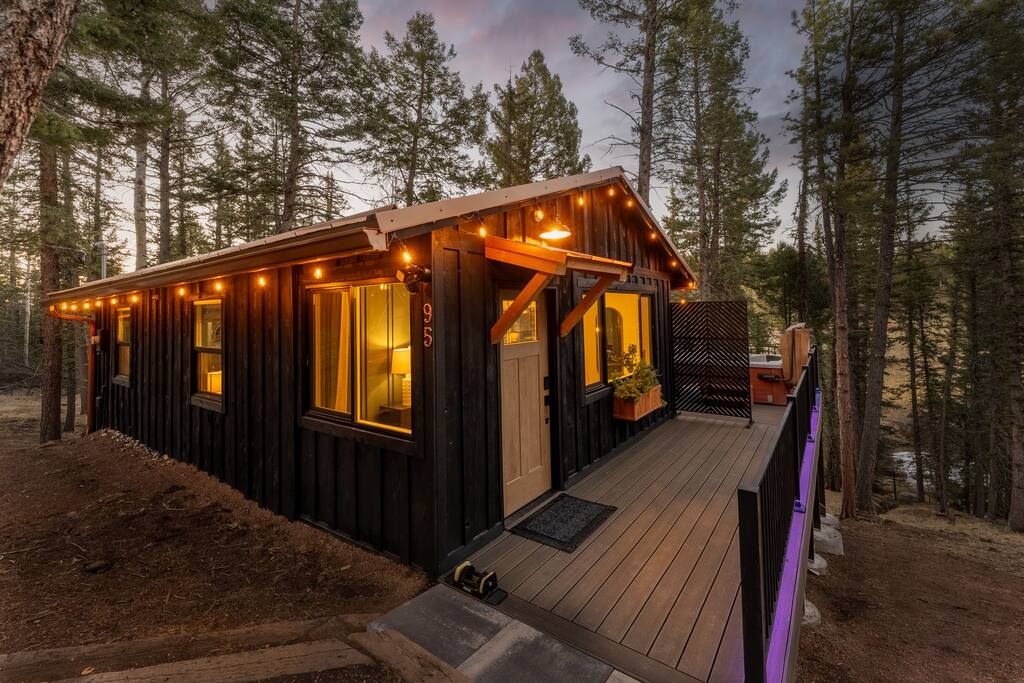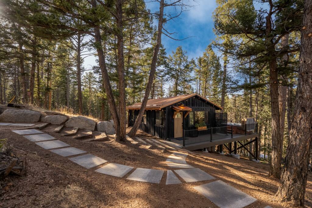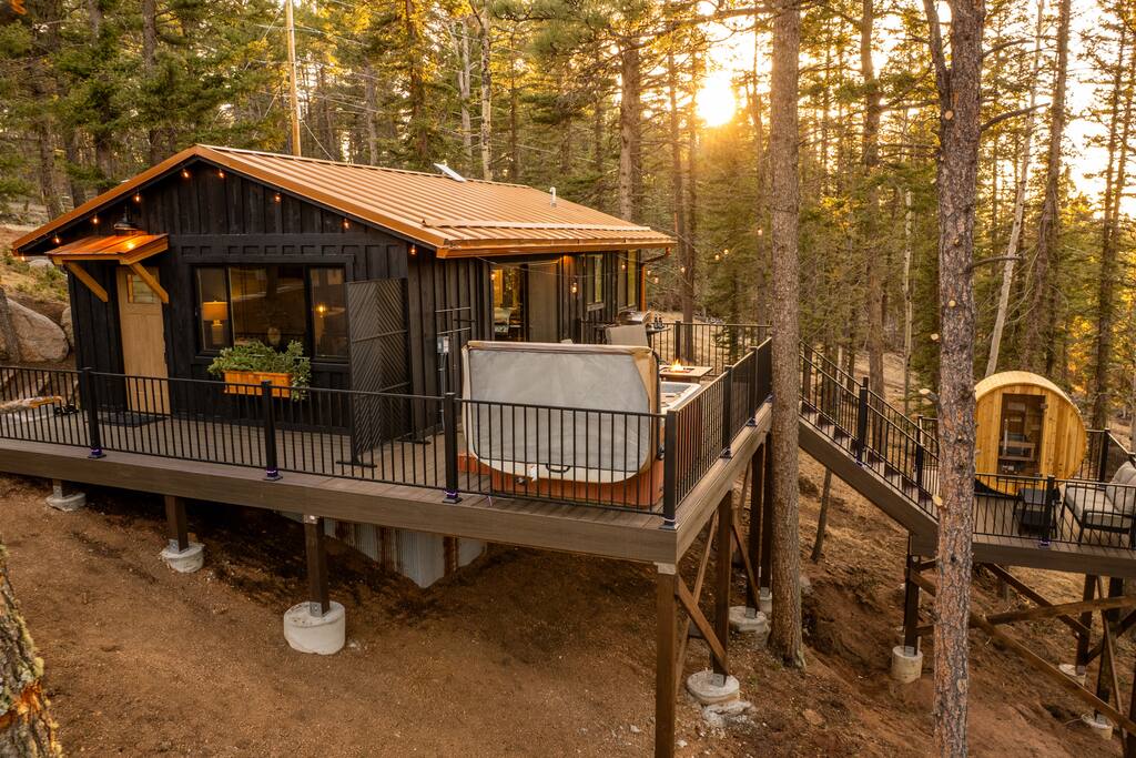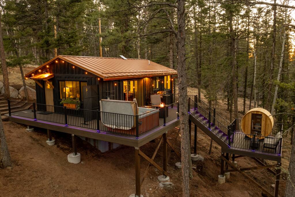 Woodland Studio Tucked into the tranquil Colorado woods, this custom-designed cabin is your private sanctuary. Whether you're a couple seeking romance, a solo traveler in need of rest, or a creative soul looking for inspiration, this peaceful retreat has you covered. ✨ Highlights: +Open studio layout | 1 King bed | 1 bathroom +Hot tub + sauna on a multi-level deck +Creative space for yoga, meditation, or art +Fire pit under the stars