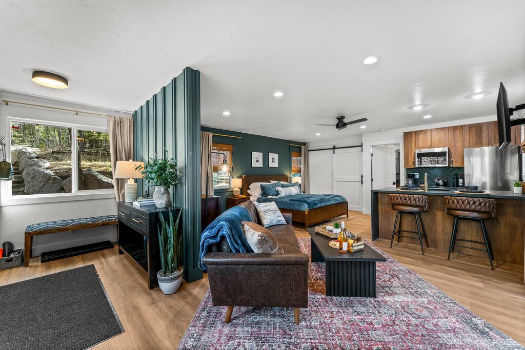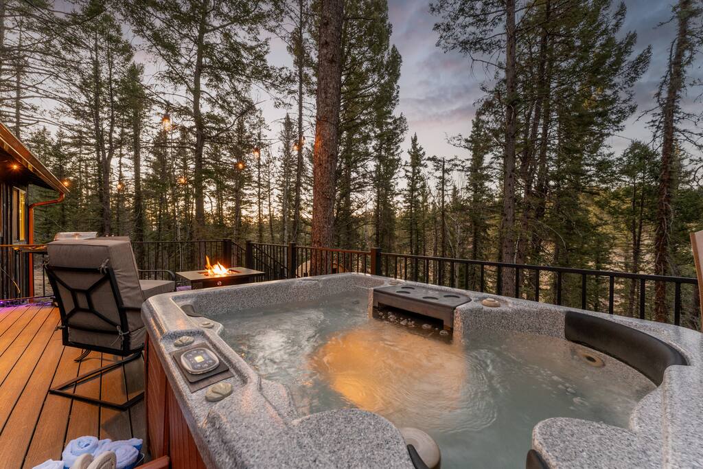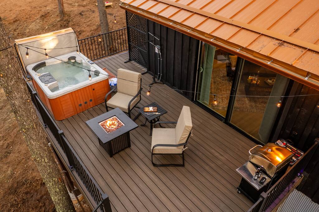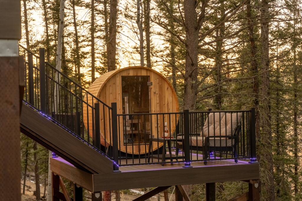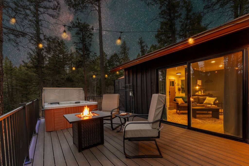 Woodland Studio Tucked into the tranquil Colorado woods, this custom-designed cabin is your private sanctuary. Whether you're a couple seeking romance, a solo traveler in need of rest, or a creative soul looking for inspiration, this peaceful retreat has you covered. ✨ Highlights: +Open studio layout | 1 King bed | 1 bathroom +Hot tub + sauna on a multi-level deck +Creative space for yoga, meditation, or art +Fire pit under the stars