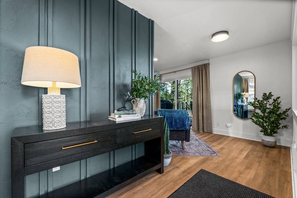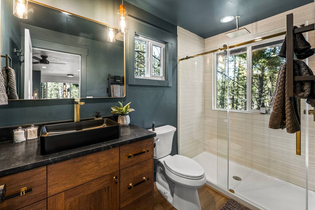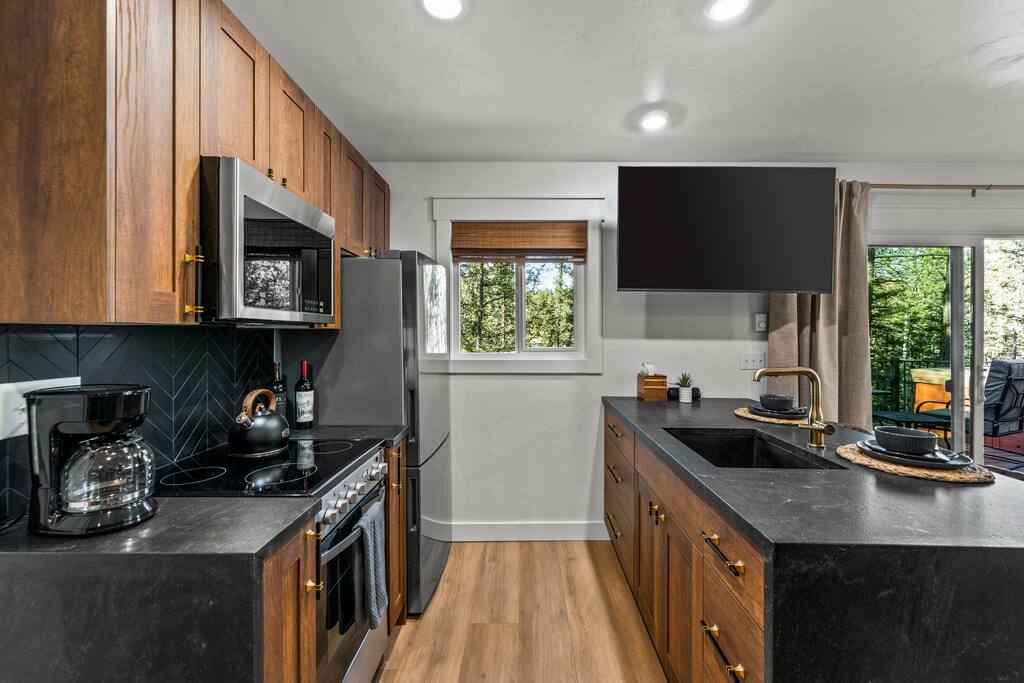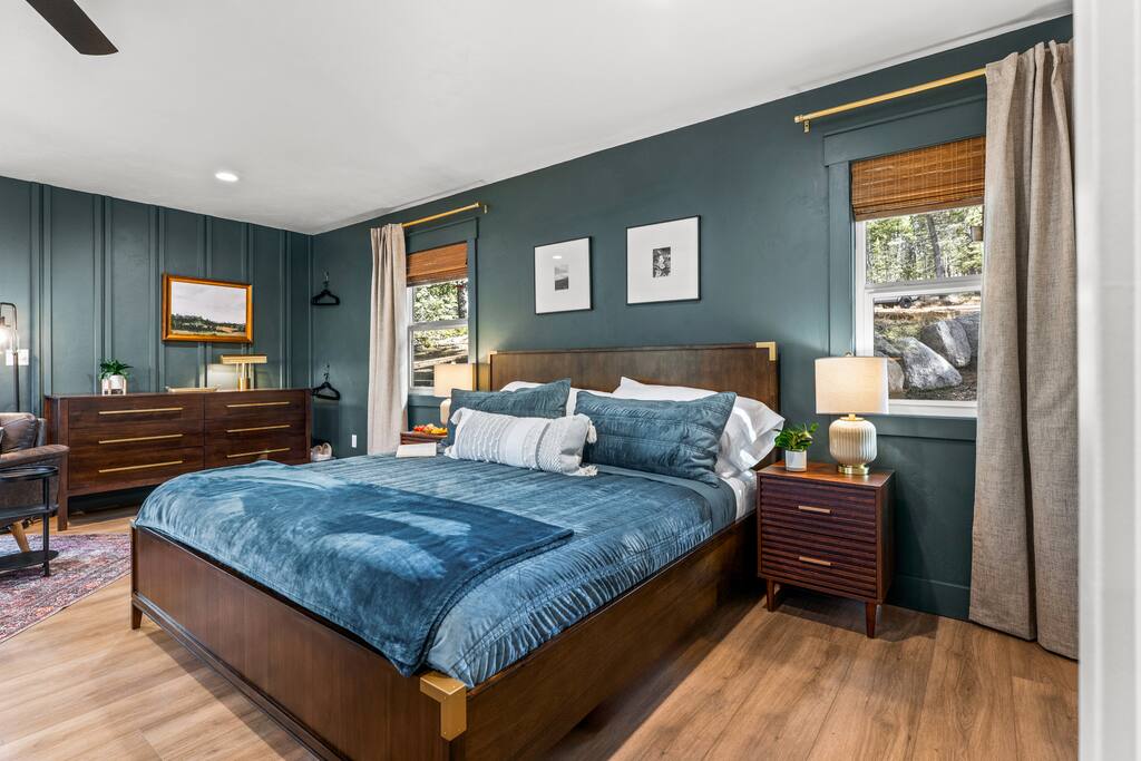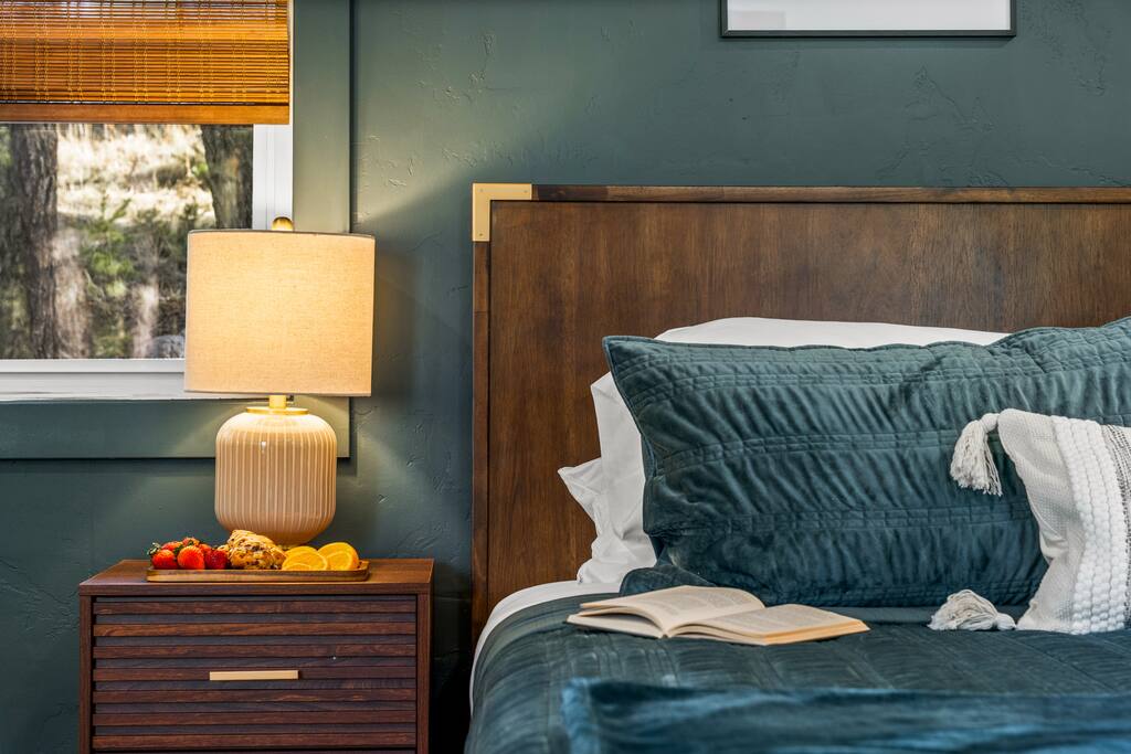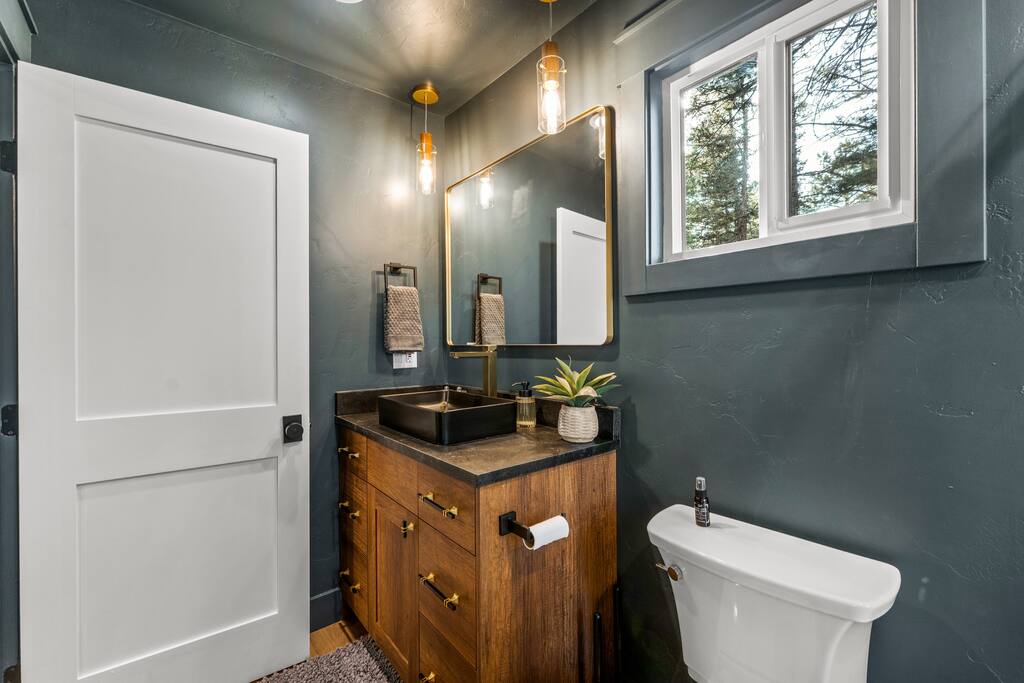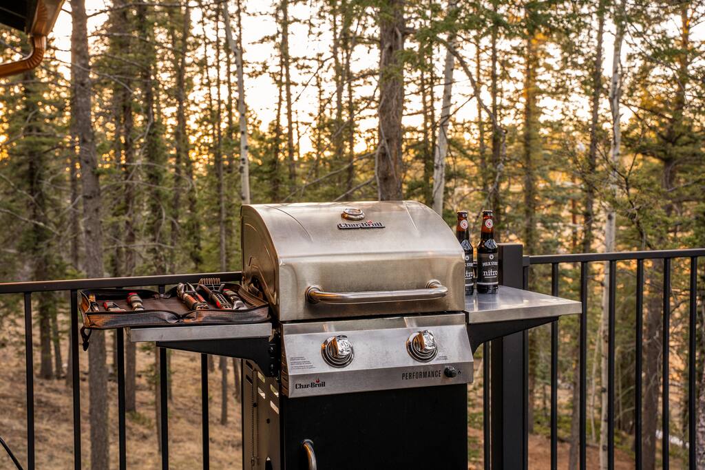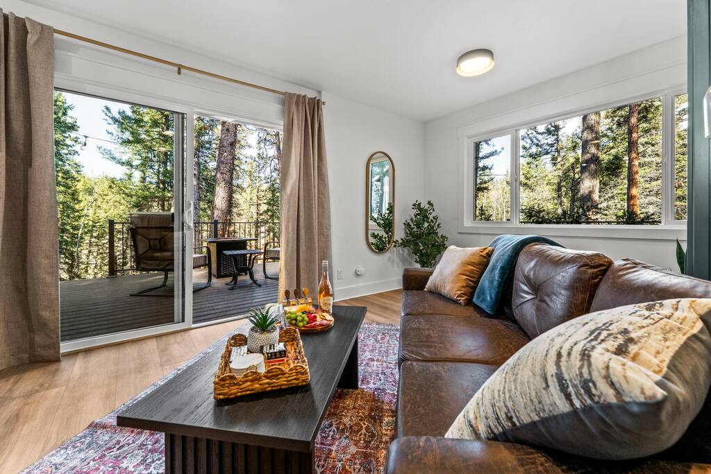 We do NOT accept check in or check out on holidays. Absolutely NO open fires are allowed. The risk of wildfire in the area is too high. The gas firepit is available when there is no fire ban. If there is a fire ban, the firepit will be removed. You will be asked to leave immediately if there is any fire activity. The roads require AWD or 4WD for November through April (however it can snow in October and in May!). The roads are plowed after 6 inches of snow. You do not need a 4WD or AWD in the summer but be aware that the dirt roads in the neighborhood are bumpy! Pets This is a pet-friendly listing for pets who qualify. At this time we only allow dogs at this house. Please message us before booking for our pup policy to see if your dogs qualify. There is an additional fee for bringing a pet to cover the cleaners’ extra time to keep the space fresh for future guests. A/C There is no air conditioning unit here. It is very rare in our county to have one installed in a house (even brand new builds!). The nights are cool in the summer so to cool the cabin off you can open all the windows and doors at night, then close them during the day and you stay cool! There are fans provided to help blow the cool air through the cabin. Elevation We are at 9,000 feet in elevation — altitude sickness can occur but you can do things to prevent it and alleviate symptoms including, taking a day to rest when you arrive, drink extra water and stay well hydrated (avoiding alcohol will help). Surrounding Area When you are on the back deck it feels very secluded but from the front deck, you can see the neighbors. It is a quiet and peaceful area.