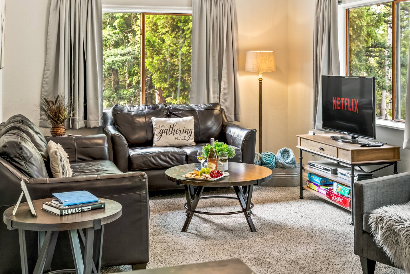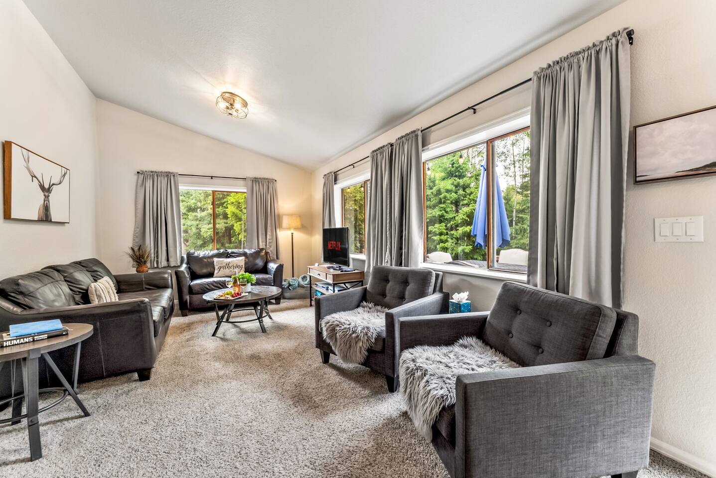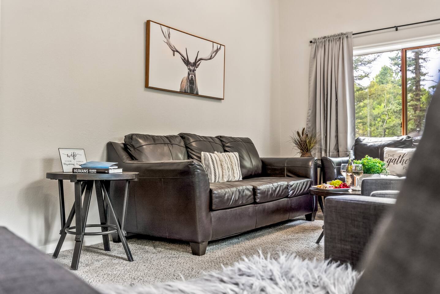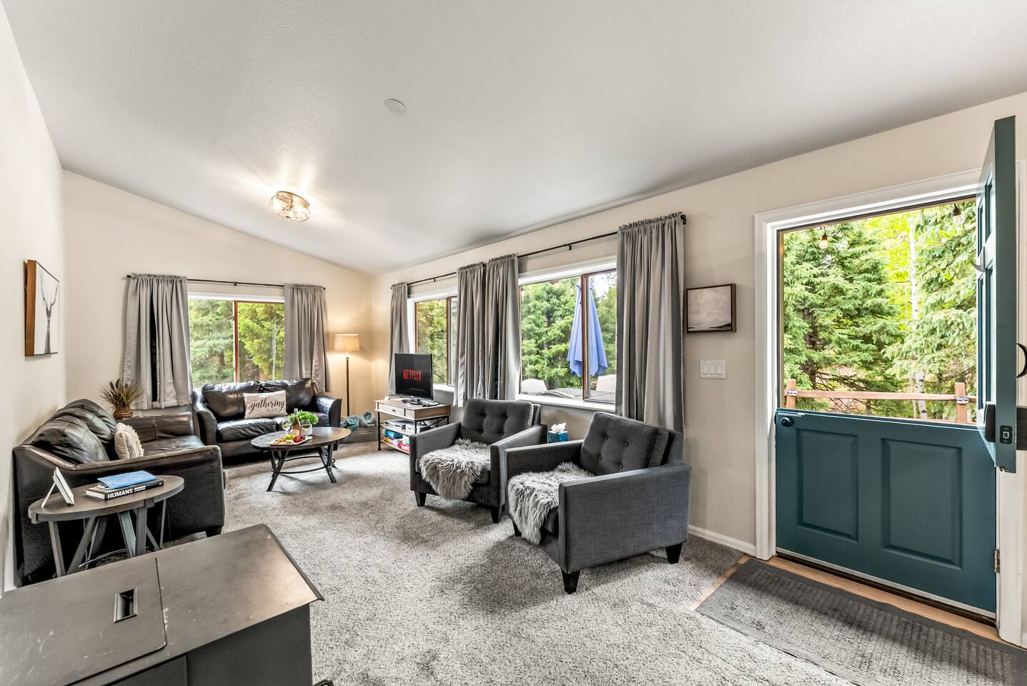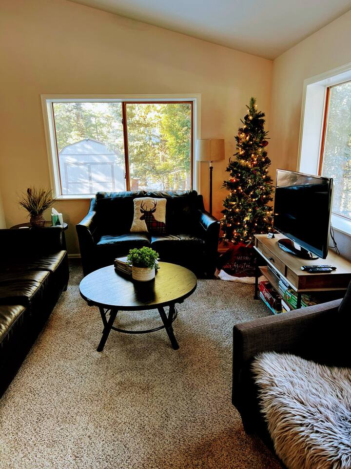 Cautionary Notes (Please Read)! We do NOT accept check-in or check-out on holidays. Absolutely NO open fires are allowed. The risk of wildfire in the area is too high. You will be asked to leave immediately if there is any fire activity. The roads require 4WD for November through April (however it can snow in October and in May!). The roads are plowed after 6 inches of snow. You do not need a 4WD or AWD in the summer but be aware that the dirt roads in the neighborhood are bumpy! Pets This is a pet-friendly listing for pets who qualify. At this time, we only allow dogs in this house. Please message us before booking for our pup policy to see if your dogs qualify. There is an additional fee for bringing a pet to cover the cleaners’ extra time to keep the space fresh for future guests. There is no air conditioning unit here. It is very rare in our county to have one installed in a house (even brand-new builds!).. The nights are cool in the summer, so to cool the house off, you can open all the windows at night, then close them during the day, and you stay cool! Fans are provided to help blow the cool air through the cabin. We are at 9,400 feet in elevation — altitude sickness can occur but you can do things to prevent it and alleviate symptoms including, taking a day to rest when you arrive, drink extra water and stay well hydrated (avoiding alcohol will help).