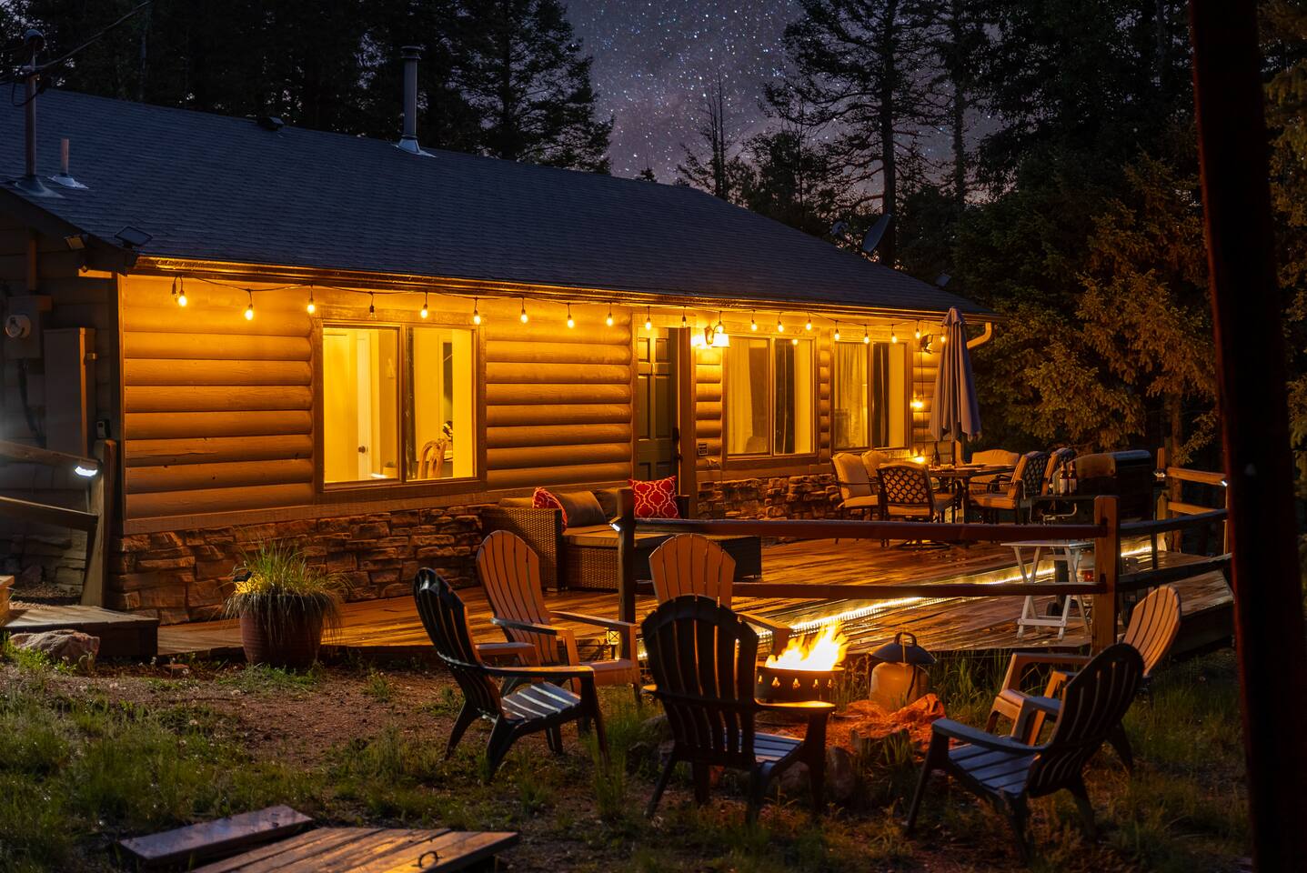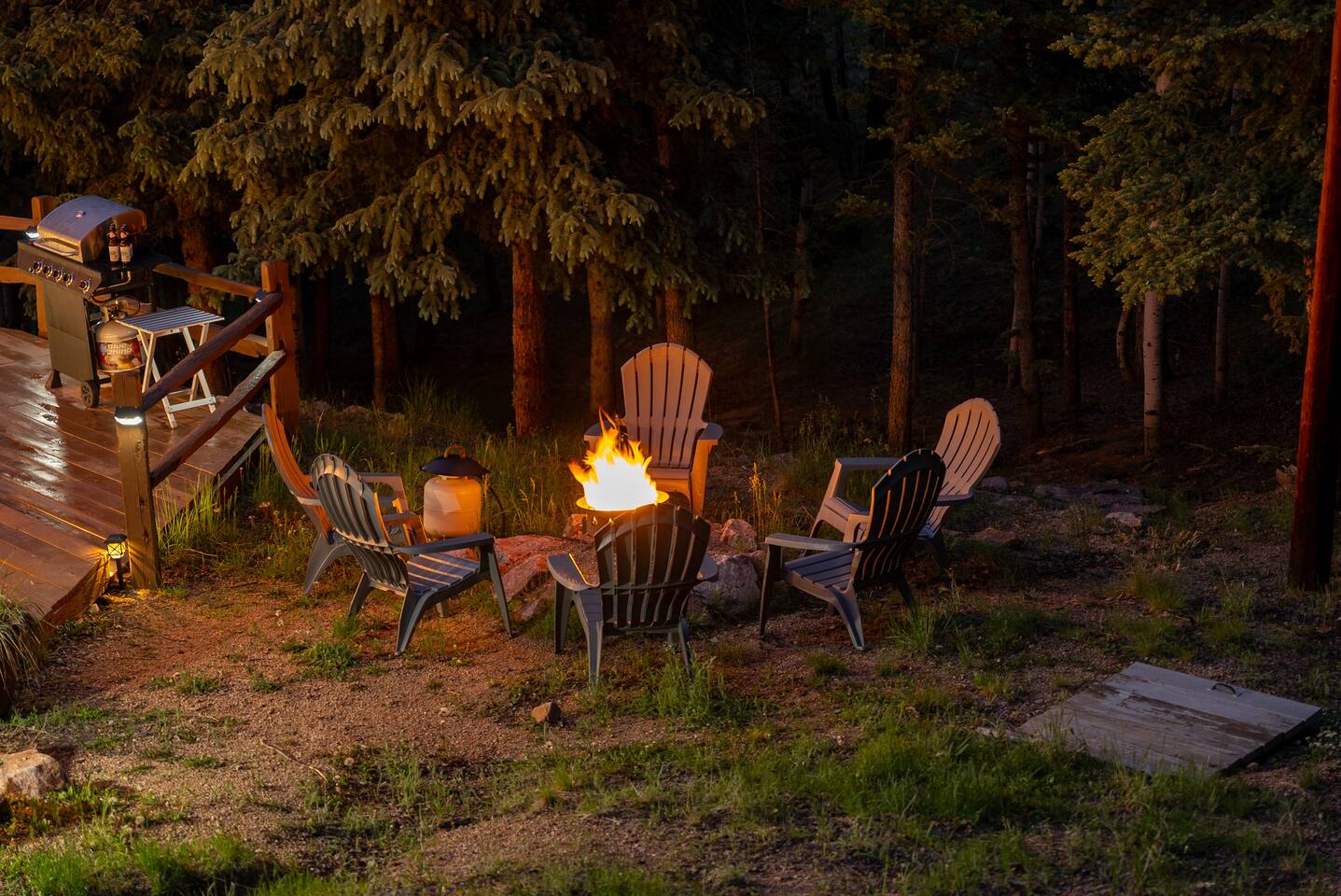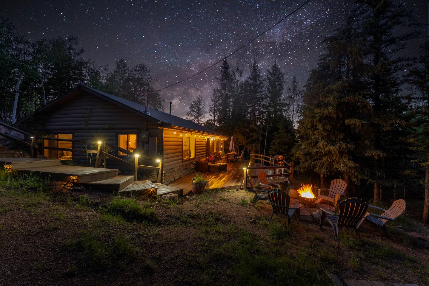 Remote little lodge on 2 acres, surrounded by pines and aspens. The neighborhood is spread out and on a dirt road. This cabin is a 3 min walk from Goldenbell camp. Divide is 7min away, Woodland Park is 16min, Colorado Springs is 41 min.